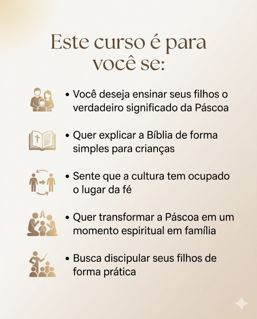 Um curso criado para ajudar mães cristãs a transformarem a Páscoa em um momento espiritual real dentro do lar.