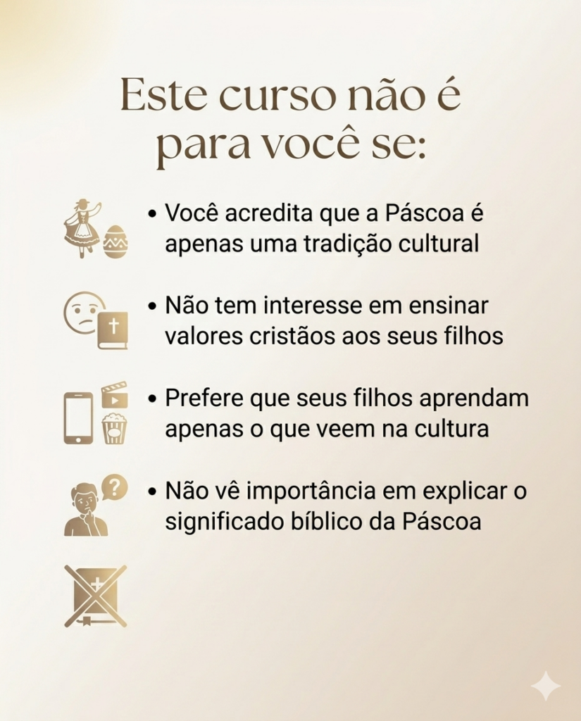Continuar deixando que seus filhos aprendam sobre a Páscoa apenas pela cultura ao redor — com chocolate, coelhos e tradições que não explicam o verdadeiro significado bíblico da data.
